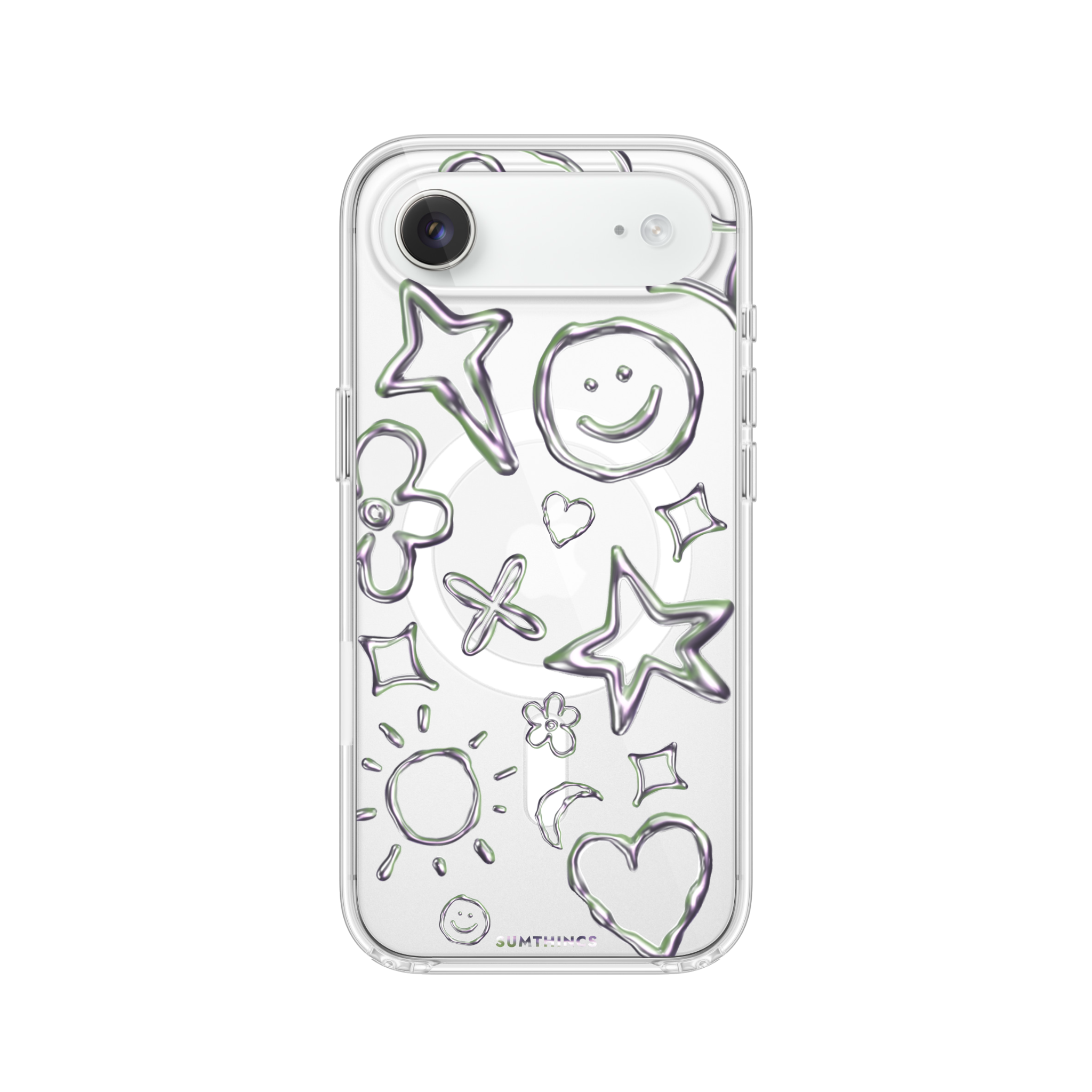 iPhone 17 Air Silver Doodles Clear MagSafe Telefon Kılıfı